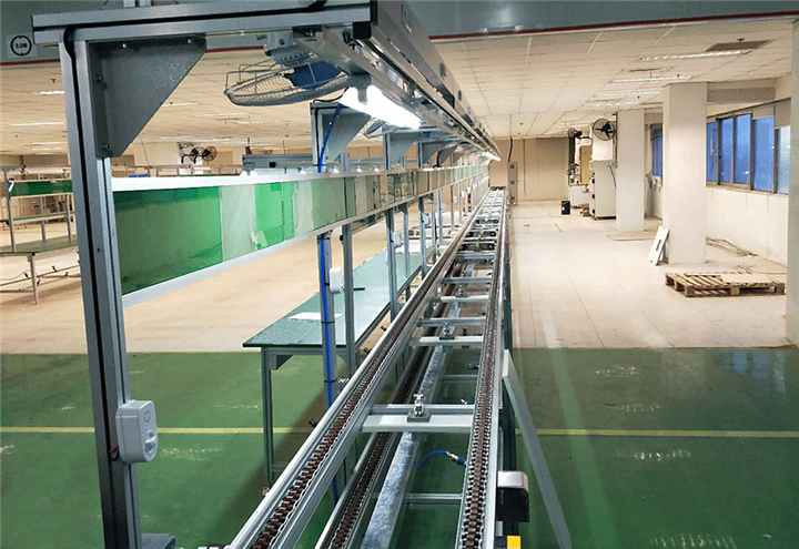 智能馬桶蓋板組裝線包含頂升機、皮帶線、倍速鏈線、測試線等,有效的人和機器組合,充分體現設備的靈活性,它將輸送系統、隨行夾具和在線專機、檢測設備有機的組合,以滿足馬桶蓋板的裝配要求。