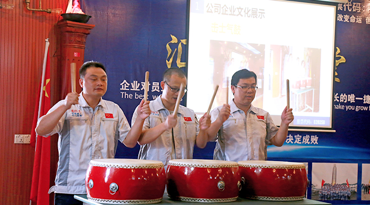 會(huì)議由行政部經(jīng)理袁侃主持。會(huì)議在激昂的《匯興之歌——用心智造世界》 拉開帷幕,全體參會(huì)人員向企業(yè)核心價(jià)值觀“孝道、商道、人道”行三鞠躬禮,宣讀企業(yè)愿景——成為全球領(lǐng)先的整廠自動(dòng)化系統(tǒng)解決方案提供商,企業(yè)使命——做受尊敬的好人、造受尊敬的產(chǎn)品、辦受尊敬的企業(yè)、建受尊敬的平臺(tái),企業(yè)精神——用情做人、用心做事,團(tuán)隊(duì)精神——忠誠團(tuán)結(jié)、勤奮進(jìn)取。隨后,匯興智造干部職員代表鐘建輝、彭大海,鄭建團(tuán)共同敲響士氣鼓,鼓舞匯興智造牢記初心,砥礪前行。