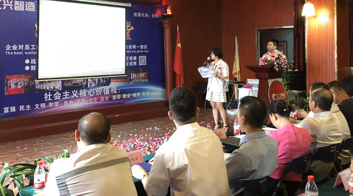 2017年9月28日,廣東匯興精工智造股份有限公司(股票代碼:839258)在匯興學(xué)校召開9月份月度大會及重要簽約儀式。董事長鐘輝,辛主任,東莞證券郭副總裁一行,大信會計事務(wù)所肖所長一行,華商律師所姜先生一行,中國銀行大嶺山支行葉行長,建設(shè)銀行大嶺山支行陳行長,東實集團(tuán)潘經(jīng)理等一系列特別嘉賓及匯興智造各分子公司代表參加此次大會。人資行政部經(jīng)理袁侃主持本次會議。