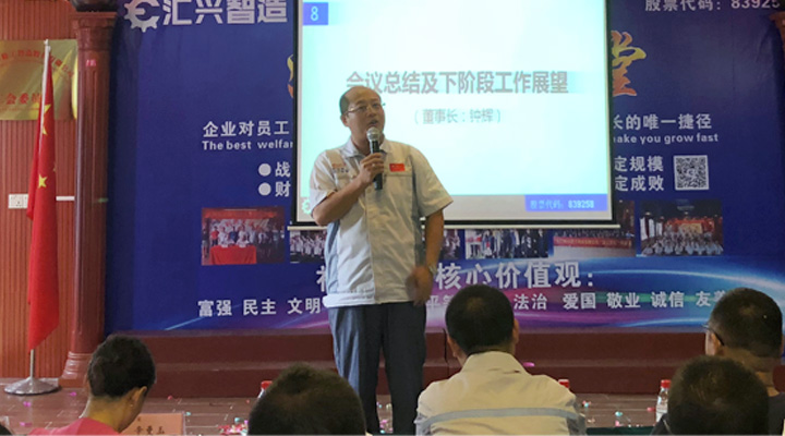 最后,由鐘輝董事長作會議總結(jié)及下階段工作展望。董事長鐘輝表示:“陪伴才是最長情的告白”感謝各位同事及貴賓對匯興智造一如既往的支持。企業(yè)的發(fā)展離不開每一位的努力,未來匯興智造將快速發(fā)展的階段。沿著老路去不了新的地方,正如我們會議場上唱響的歌曲,相信我們創(chuàng)造奇跡。會議取得圓滿成功,集眾智,匯眾力,搶時間,抓機(jī)遇,全體匯興人,一諾千金,奮斗到底!