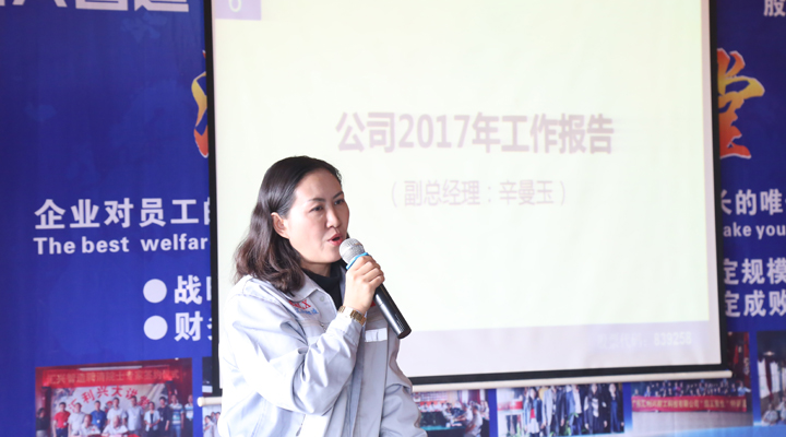 匯興智造副總經理辛曼玉以一句“2017,您幸福嗎?”開啟大會的第六項議程,作2017年年度工作報告。辛副總說:“在2017年,匯興智造實現(xiàn)了16年來都沒有實現(xiàn)的銷售業(yè)績;成立了研究院、技術研究中心等研發(fā)機構,公司的研發(fā)能力得到提高;調整了產品結構,拓展了行業(yè)范圍,并且守護住了傳統(tǒng)行業(yè),夯實了業(yè)績;實現(xiàn)了配件事業(yè)的業(yè)績倍增,取得喜人成績;加強了人力資源建設,老員工在進步,能力在提升,而高學歷、高層次員工的加盟,讓匯興智造如虎添翼。這一年,雖然我們經歷了困難、挫折,但取得的成績是驕人的。匯興智造在往前走,往上走,我們在上坡的過程中,會氣喘,會腿酸,很累,但當我們爬上山頂?shù)臅r候,那種‘會當凌絕頂,一覽眾山小’的豪情和喜悅卻是無法比擬的。所以,如果有人問:2017,您幸福嗎?我會回答:我很幸福!”