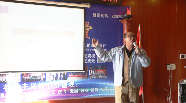 大會的最后一個議程是匯興智造鐘輝董事長作會議總結及2018年工作展望。鐘輝董事長說道:“我們報喜不藏憂,變化不變心。2017年,匯興智造喜事不斷:入選東莞市倍增計劃試點企業(yè);成立東莞市院士工作站;進入新三板創(chuàng)新層;獲批了35畝企業(yè)用地;市重大項目補助落實;德國子公司建立;在國際科技合作周活動中,承辦的德國館和論壇萬眾矚目,省長、各部級領導、院士大加贊賞;申報了廣東省成長型企業(yè);戰(zhàn)略性新興產業(yè)骨干(培育)企業(yè)評審通過;銀行授信額度增大;知識產權貫標;業(yè)績倍增,納稅1000多萬,成為大嶺山鎮(zhèn)納稅大戶。雖然我們取得了好的成績,獲得了好的聲譽,但我們不能藏憂,人才建設的加強;管理制度的完善;銷售業(yè)績的增長;訂單的消化;收款流程的優(yōu)化;各部門溝通協(xié)調的加強等等,我們還有很多問題需要解決。‘茍日新,日日新,又日新’,生活從不眷顧因循守舊、滿足現(xiàn)狀者。我們要變化,有了變化,才有進步。我們的車間變得更規(guī)范,辦公區(qū)域變得更漂亮;供應商變得更優(yōu)質;我們提供給客戶的產品和服務變得更豐富;客戶群體變得更高端。但是不管怎么變,任爾東西南北風,在即將到來的2018年,我們仍然堅守初心,牢記使命,砥礪前行。”