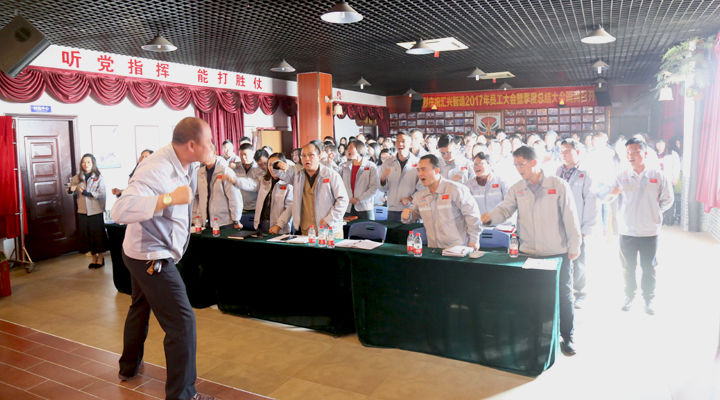 “為夢想沖刺,我是匯興智造的一名忠誠戰(zhàn)士,殺!殺!殺!”,震天喊聲響徹會場,匯興人殺掉困惑,殺掉不妥,殺掉阻礙,挺胸抬頭,勇往直前。“雄關漫道真如鐵,而今邁步從頭越”,2017已不可追,2018正等著匯興智造再創(chuàng)佳績。