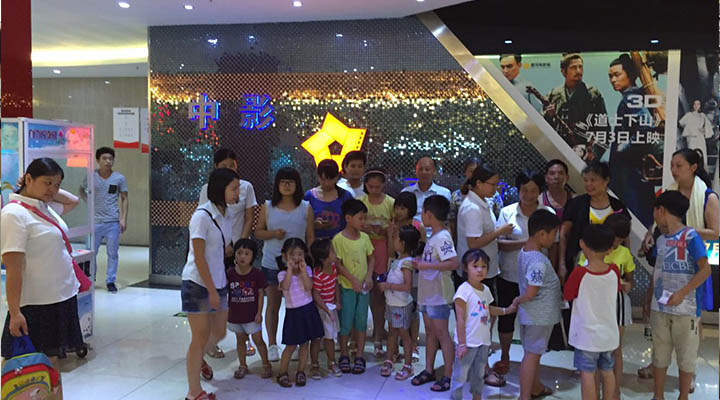 快樂的時(shí)間還在繼續(xù),午后孩子們職員的帶領(lǐng)下來到了中影星河電影城(大嶺山店)進(jìn)行觀影,選擇了“票房萌神”胡巴主演《抓妖記》進(jìn)行觀看,“調(diào)皮搗蛋的小胡巴,分分鐘把人萌化”全場小朋友被它的一舉一動、一顰一笑逗得哈哈大笑,愛意滿滿。同時(shí),讓孩子們明白了親情、感情的重要性,相對生活,我們更多的需要學(xué)會珍惜,學(xué)會感恩。