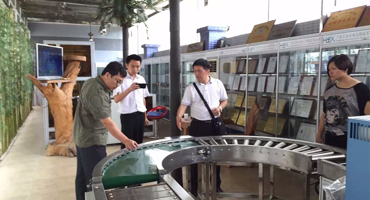 7月31日,湖南長沙上市集團楚天科技曹副總、蔡主任、李經理一行蒞臨匯利興集團指導參觀指導,匯利興集團(后更名:廣東匯興精工智造股份有限公司,簡稱:匯興智造)董事長鐘輝、外貿部經理羅大海陪同。參觀了我司的工裝板流水線、無動力滾筒流水線、機器人設備、動力滾筒線等智能裝備。