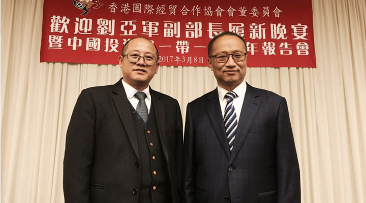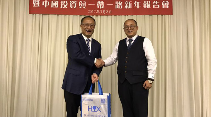 2017年3月8日,匯興智造董事長鐘輝受邀參加由香港國際經貿合作協會會董委員會在港島陽明山莊舉辦的“歡迎劉亞軍副部長履新晚宴暨中國投資與一帶一路新年報告會”。