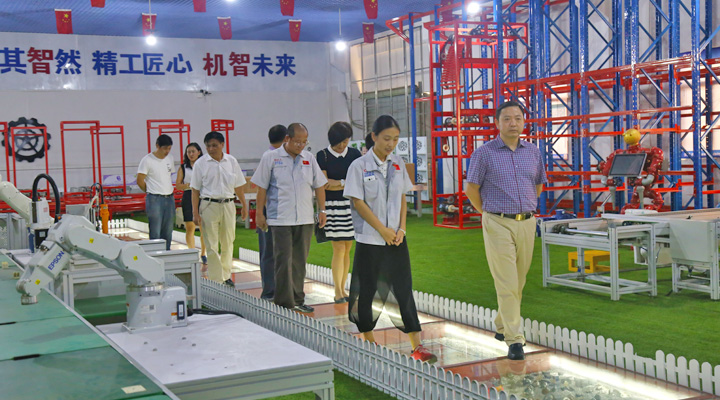 楊副院長(zhǎng)一行在董事長(zhǎng)鐘輝的陪同下參觀了企業(yè)的智能生產(chǎn)線演示、匯興精工智造工業(yè)4.0體驗(yàn)館、工程研發(fā)部信息化組等部門,雙方表示今后要加強(qiáng)對(duì)接,細(xì)化合作內(nèi)容,創(chuàng)造更多的社會(huì)價(jià)值。在參觀過程中,董事長(zhǎng)鐘輝向一行成員介紹了公司的發(fā)展歷程、經(jīng)營(yíng)業(yè)務(wù)及取得成就,他表示作為掛牌上市公司,始終重視企業(yè)內(nèi)部的人才培養(yǎng)和技術(shù)革新,需要校企之間密切合作,并在不同的專業(yè)和領(lǐng)域搭建多種平臺(tái),促進(jìn)校企間的優(yōu)勢(shì)互補(bǔ)和良性互動(dòng)。