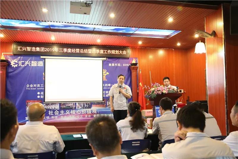 9月7日上午,廣東匯興精工智造股份有限公司在東莞總部隆重舉行2019年第三季度經(jīng)營總結暨第四季度工作規(guī)劃大會。匯興智造東莞總部、東莞分公司、深圳辦事處、順德辦事處全體同仁齊聚匯興學院,總結2019年第三季度工作經(jīng)驗,為2019年最后一季度的沖刺工作做籌劃,竭盡全力,拼搏奮斗。