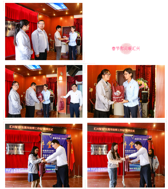 鐘輝董事長向蒞臨此次揭牌儀式的領(lǐng)導(dǎo)致以衷心的感謝。首先作了企業(yè)人才培養(yǎng)及規(guī)劃報(bào)告,表示公司一直秉承“創(chuàng)于手、精于工、智于器、匠于心”的工匠精神,任何事情都要精益求精、鍥而不舍,把手頭上的事情做到極致。接下來,將積極發(fā)揮技師工作站的指導(dǎo)作用,致力于發(fā)展高技能人才培養(yǎng)計(jì)劃。他強(qiáng)調(diào),感謝東莞這片沃土,讓我們努力在2019年實(shí)體經(jīng)濟(jì)發(fā)展面臨著國內(nèi)外復(fù)雜的嚴(yán)峻形勢(shì)下,公司仍能在逆境中實(shí)現(xiàn)增長。未來,匯興將更加重視技能人才的引進(jìn)和培養(yǎng)工作,充分發(fā)揮高技能人才引領(lǐng)帶動(dòng)作用,推動(dòng)高技能人才隊(duì)伍建設(shè),增強(qiáng)企業(yè)創(chuàng)新能力和核心競(jìng)爭(zhēng)力,把工作站的實(shí)際工作轉(zhuǎn)化為技術(shù)改革和提升人才素質(zhì)的力量源泉,為公司的發(fā)展提供有效的技能人才支撐,為東莞市打造“技能人才之都”城市貢獻(xiàn)一份力量。會(huì)后,大嶺山人社分局春運(yùn)有序流動(dòng)領(lǐng)導(dǎo)小組與匯興員工面對(duì)面交流,并送上春節(jié)慰問品,政府“送政策”“送溫暖”暖企暖心活動(dòng)細(xì)節(jié),如同這寒冷的冬季中最溫暖人心的一抹陽光,讓與會(huì)員工代表非常感動(dòng)如沐春風(fēng)倍感溫暖。技師工作站是東莞市新型高技能人才培養(yǎng)模式載體,是指承擔(dān)制訂技師培養(yǎng)規(guī)劃,開展技術(shù)培訓(xùn),多渠道加快培養(yǎng)高技能人才,總結(jié)推廣技師培養(yǎng)經(jīng)驗(yàn),普及應(yīng)用生產(chǎn)技能等活動(dòng),并建立技能人才和技能開發(fā)成果信息庫,展示技能創(chuàng)新成果的工作室,進(jìn)而推動(dòng)行業(yè)、企業(yè)產(chǎn)業(yè)升級(jí)和技術(shù)進(jìn)步。匯興智造在智能制造領(lǐng)域擁有近20年的研發(fā)、設(shè)計(jì)、實(shí)施、應(yīng)用經(jīng)驗(yàn),通過打造智能裝備全產(chǎn)業(yè)鏈產(chǎn)品(智能裝備硬件+系統(tǒng)軟件+系統(tǒng)服務(wù)),賦予傳統(tǒng)生產(chǎn)制造業(yè)更智能的元素,并用具性價(jià)比的整廠自動(dòng)化系統(tǒng)解決方案幫助更多企業(yè)解決生產(chǎn)制造的痛點(diǎn)。此外,公司還獲批建立了“廣東省院士專家企業(yè)工作站”、“東莞市院士工作站”、“省級(jí)博士后創(chuàng)新實(shí)踐基地”、“廣東省智能制造系統(tǒng)工程技術(shù)研究中心”、“東莞市研究生培養(yǎng)工作站”、“東莞市技師工作站”、“江西理工大學(xué)先進(jìn)制造技術(shù)研發(fā)中心”、“南昌大學(xué)機(jī)電工程學(xué)院研究生聯(lián)合培養(yǎng)基地”、“南昌大學(xué)機(jī)電工程學(xué)院研究生實(shí)踐基地”、“東莞理工學(xué)院教學(xué)實(shí)習(xí)基地”、“東莞理工學(xué)院城市學(xué)院就業(yè)實(shí)習(xí)基地”、“東莞職業(yè)技術(shù)學(xué)院校企合作伙伴單位”等多個(gè)科研平臺(tái),這些科研平臺(tái)的引進(jìn)為技師工作站建設(shè)賦能。