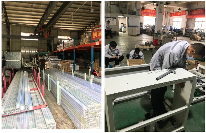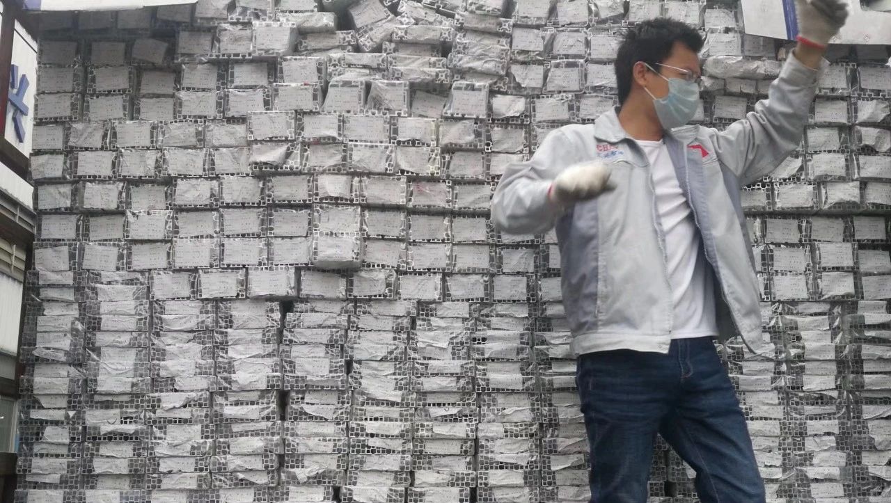 深入平穩推動復工復產,開足馬力忙生產。2月24日,先后兩輛滿載近百噸鋁材的大卡車駛入匯興工業園,匯興智造車間人員迅速組織人手卸貨,協調倉庫,并對進行入庫前的消殺,及安排出貨,組裝口罩機專用鋁型材架子,園內一片繁忙景象。